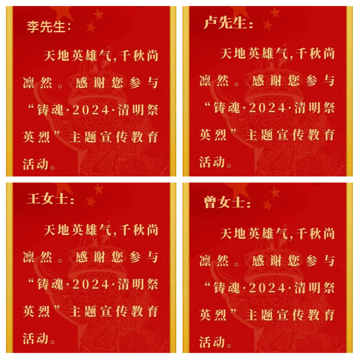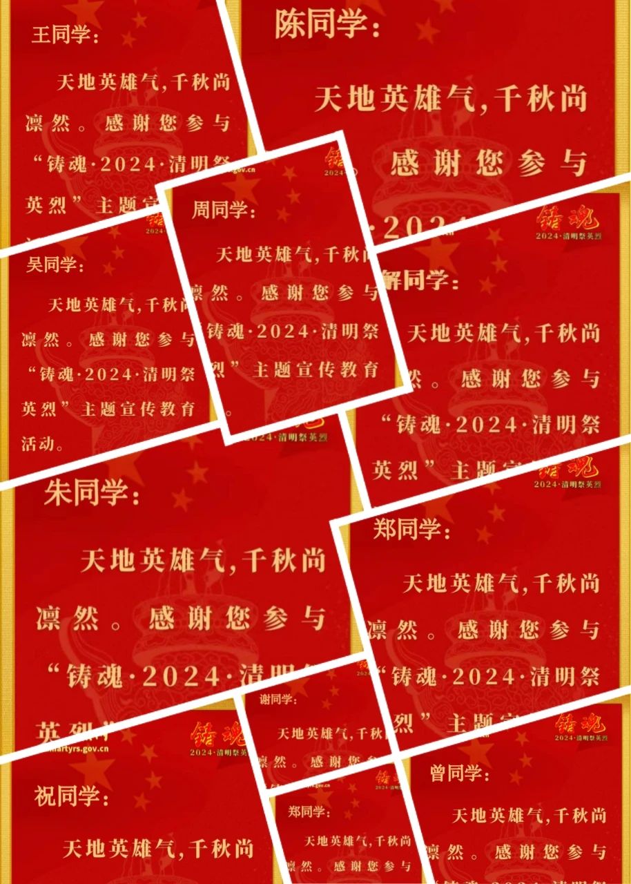 为增强学生爱党爱国意识,激发学生爱党爱国情感,文物与博物馆学院以“网上祭英烈”为主题,由我院团总支组织带领全体师生参加由中华英烈网开展的网上祭祀活动“铸魂2024清明祭英烈;用好红色资源,赓续红色血脉”。