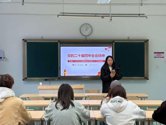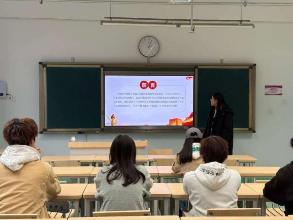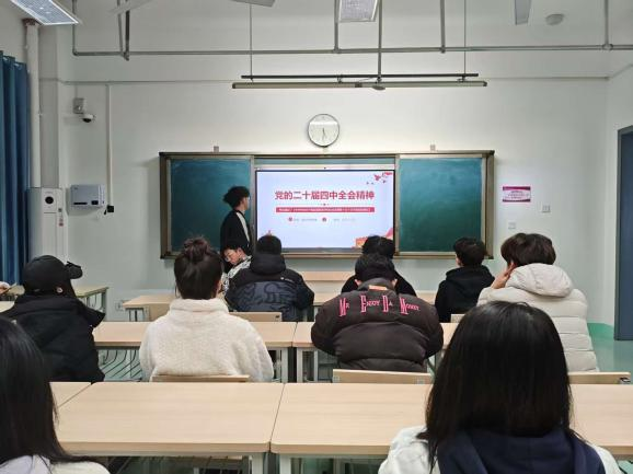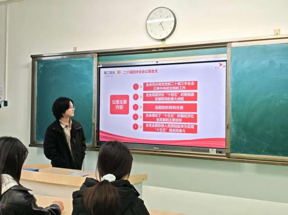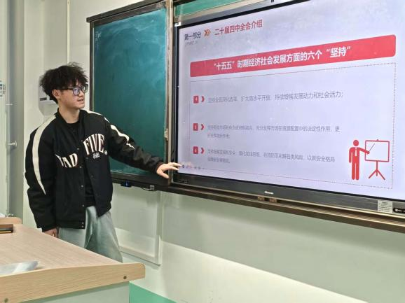 活动伊始,同学们首先通过PPT系统学习了党的二十届四中全会的基本情况:本次会议于2025年10月20日至23日在北京召开,审议通过了《中共中央关于制定国民经济和社会发展第十五个五年规划的建议》,明确了“十五五”时期经济社会发展的指导方针、主要目标和重点任务。