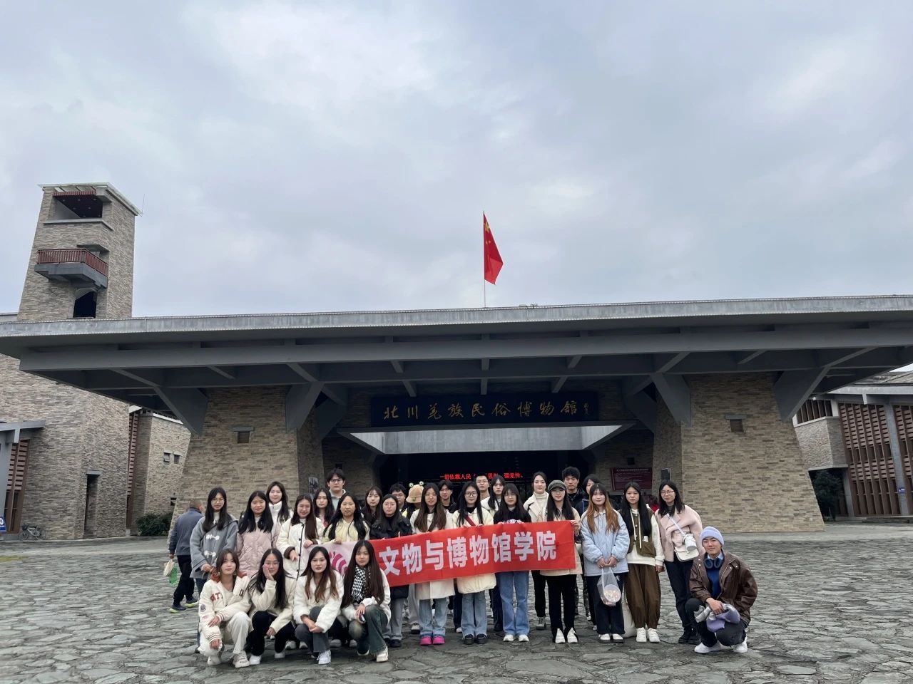 下午1点,同学们在北川羌族民俗博物馆门口集合,于合影留念后,自行开展参观活动。在一楼,同学们首先参观了大禹文化馆,在雕塑、文物与文字介绍中,了解大禹文化。其次是羌族文化作品展,李云川先生的艺术作品无处不展现着羌族文化与羌族精神,他将羌族文化与各类艺术形式相结合,尽情释放羌文化的魅力,使同学们于生活上有羌文化的熏陶,于艺术上有羌文化的享受。