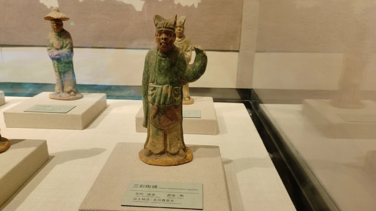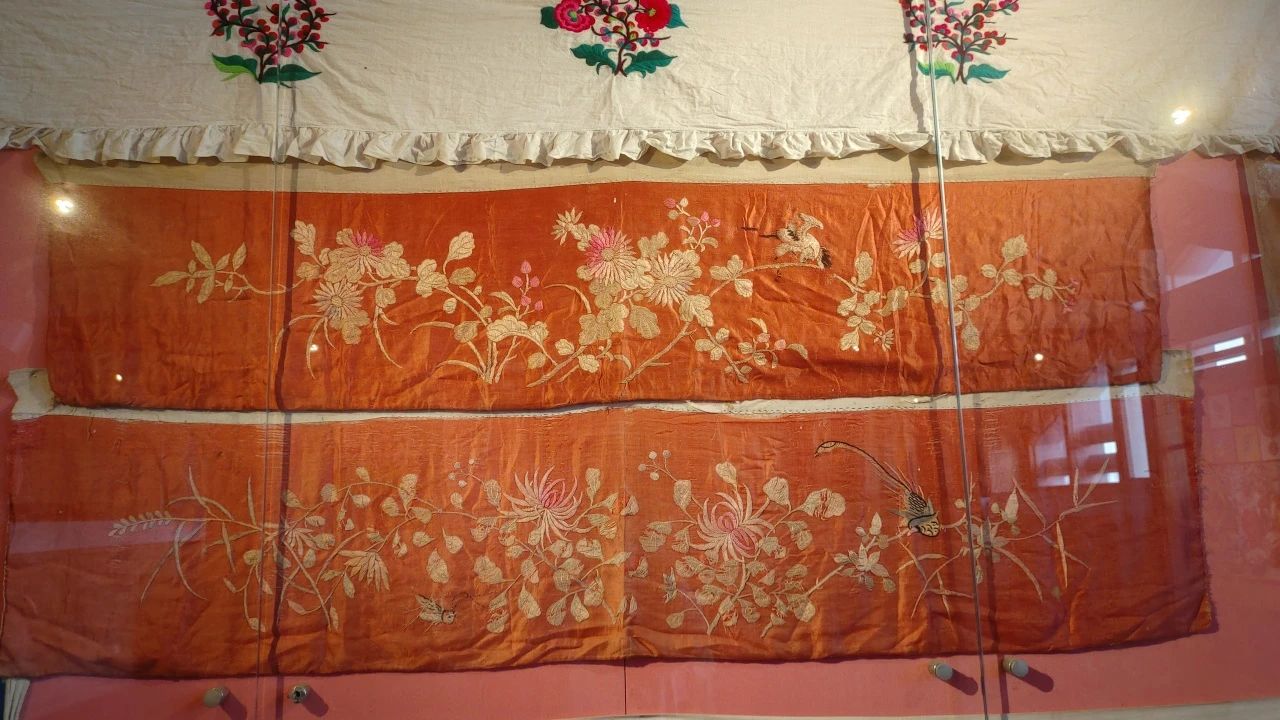 博物馆的三楼通过对二楼社会篇的延续与文化篇两个展馆进行展示。展馆对羌绣进行了详细的呈现,羌绣处处彰显着羌族人民的智慧与心灵手巧,羌绣图案古朴完整,其主要作用是美化服饰,使羌族服饰从头到脚都鲜艳夺目。其次,展馆对羌族的宗教进行了讲解,通过文物展示、视频解说、文字解析等方式,使游览者了解白石崇拜与宗教仪式执行者——释比。