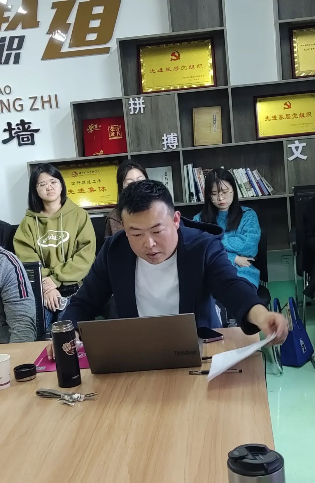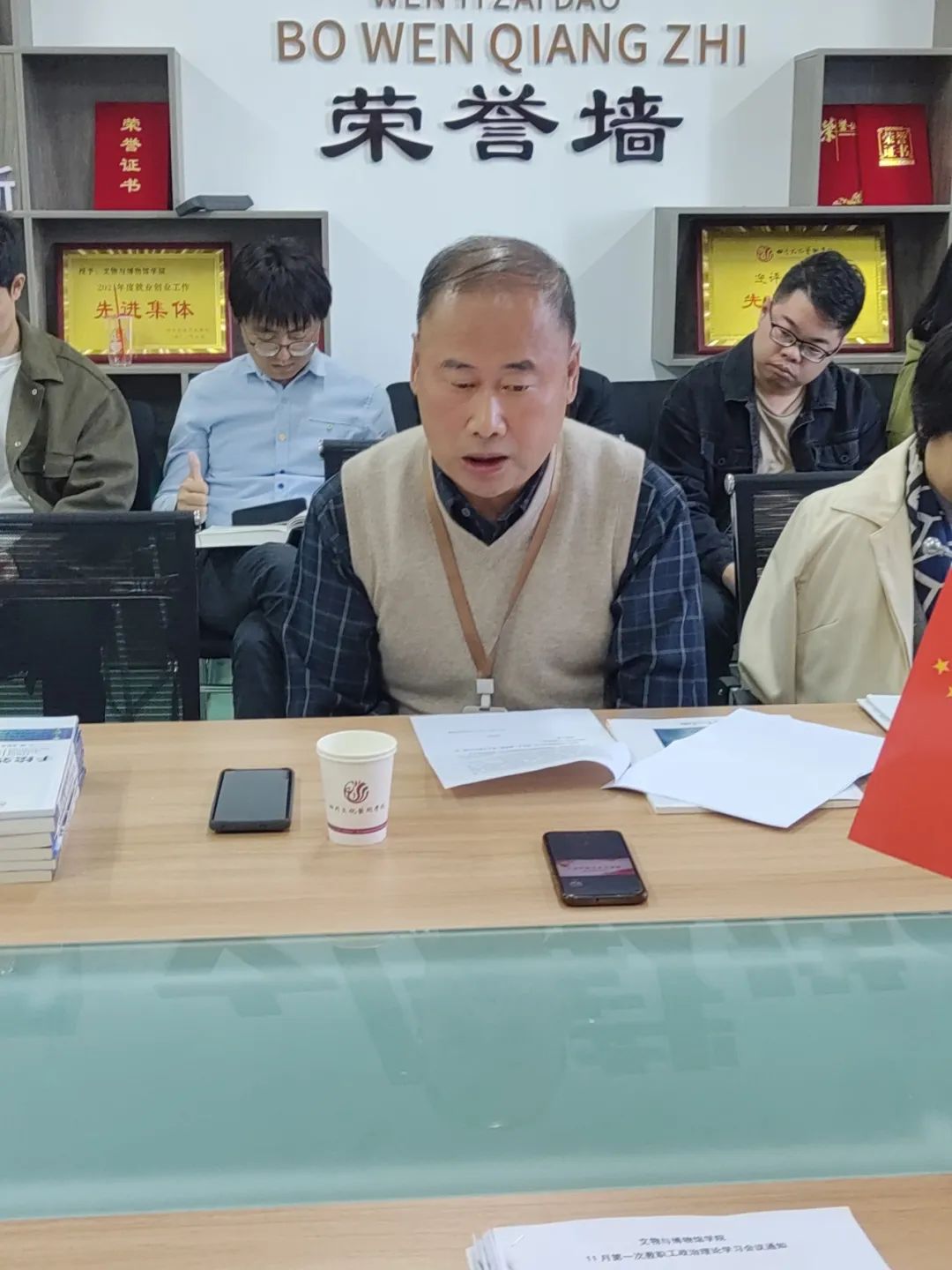为进一步加强全校教职工政治理论学习,不断提高教职工政治理论水平与思想道德素质,文物与博物馆学院于2023年11月6日下午2点30,在B栋教学楼203学院会议室开展了教职工政治理论学习会。会议由党支部书记羊洋主持,文物与博物馆学院全体教职工参加了此次会议。