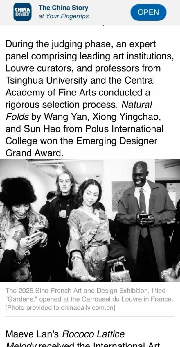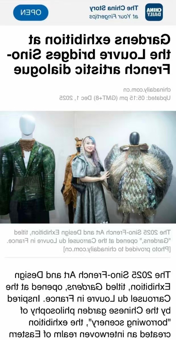 近日,文化传承学院宝石及材料工艺学专业的石晓宇老师,以时尚艺术策展人的身份,悉心策展了2025中法艺术设计展卢浮宫特展——「园囿」,该特展于法国卢浮宫卡鲁塞尔展厅(Carrousel du Louvre)圆满落下帷幕。此次特展以中国园林“借景”哲学为灵感源泉,精心构筑了一个“虚实交织的东方美学场域”,堪称一场跨越时空的“造园盛举”。特展汇聚了来自中法及全球多地的杰出艺术家,他们携各自风格独特、匠心独运的作品参展,为中法文化交流搭建了一个高端平台,也为全球艺术界献上了一场融合传统与现代、东方与西方的视觉盛宴。