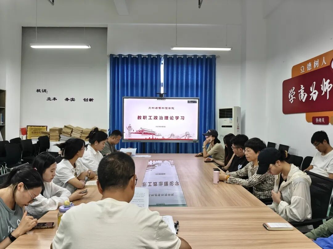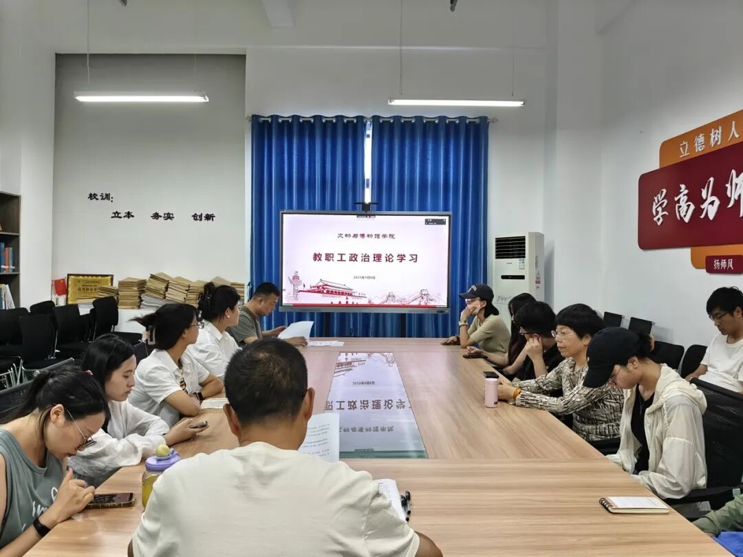 为增强全院教职工政治理论学习的意识,不断提高教职工政治理论水平、思想道德素质。文物与博物馆学院于2025年9月8日14点30分,在教学楼B栋203学院会议室召开了9月第1次教职工政治理论学习会。会议由文物与博物馆学院党支部书记王君钢主持,学院全体教职工参与此次会议。
