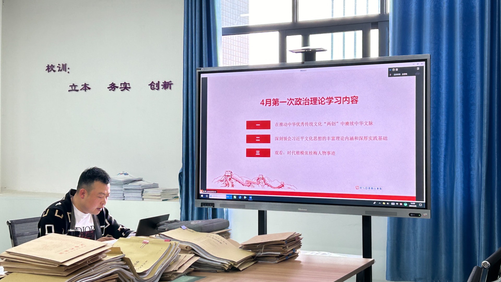为进一步加强全院教职工政治理论学习,不断提高教职工政治理论水平、思想道德素质。文物与博物馆学院于2024年4月8日下午2点30分,在B栋教学楼召开文物与博物馆学院教职工政治理论学习会。会议由文物与博物馆学院党支部副书记王君钢主持,我院全体教职工参加了此次会议,会议采取线上线下相结合的方式进行。