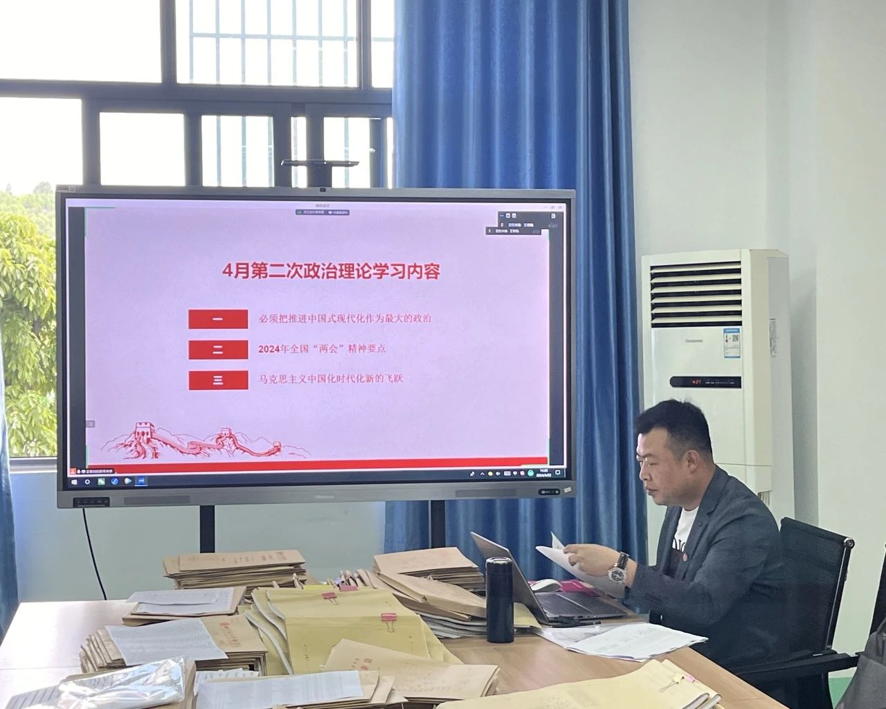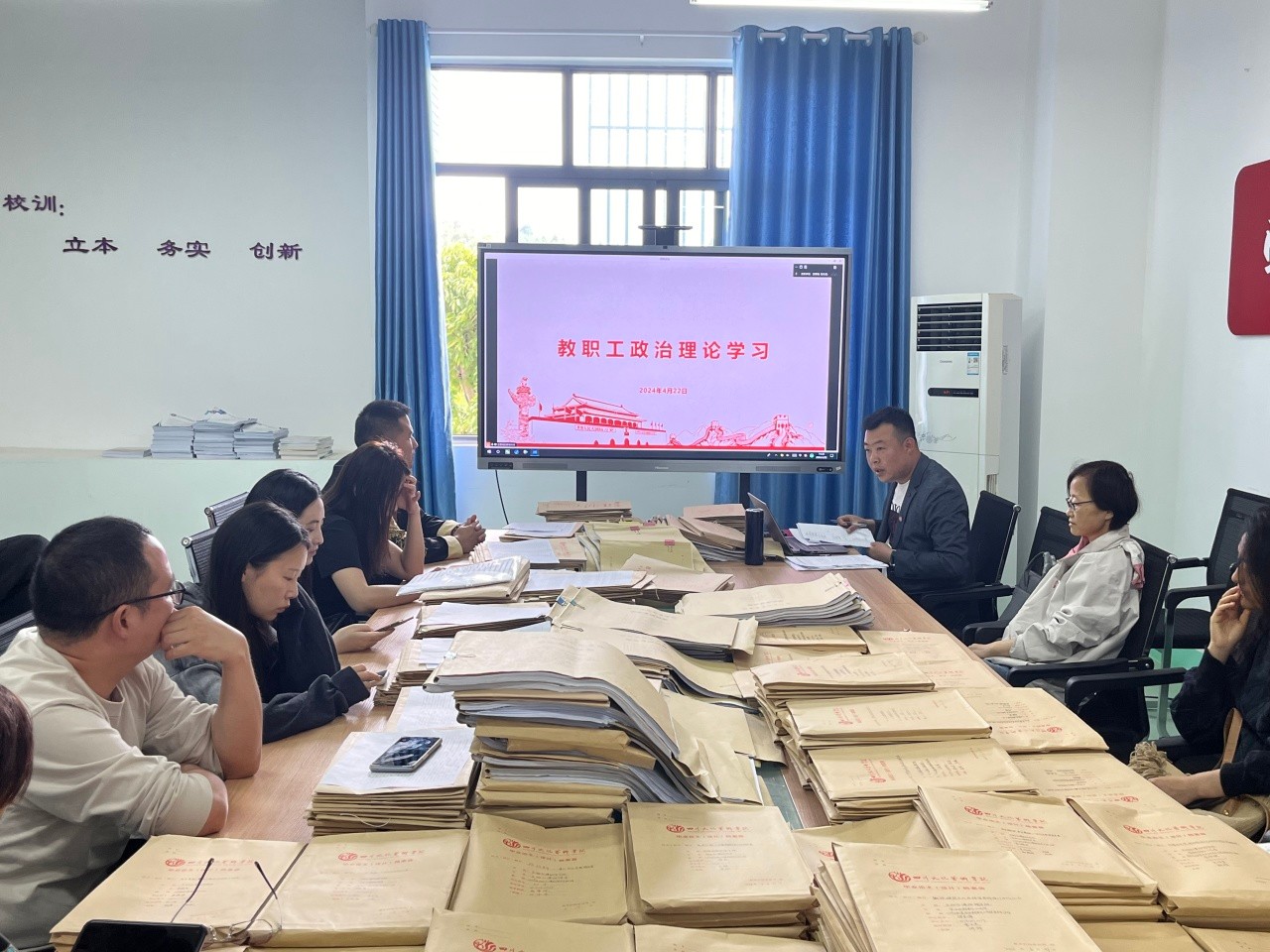 为进一步加强全校教职工政治理论学习,不断提高教职工政治理论水平、思想道德素质。文物与博物馆学院于2024年4月22日下午2点30分,在B栋教学楼203学院会议室召开“文物与博物馆学院4月第2次政治理论学习会议暨全院教职工大会”。会议由党支部副书记王君钢主持,全院教师参加了此次会议,会议以线上线下相结合的方式进行。