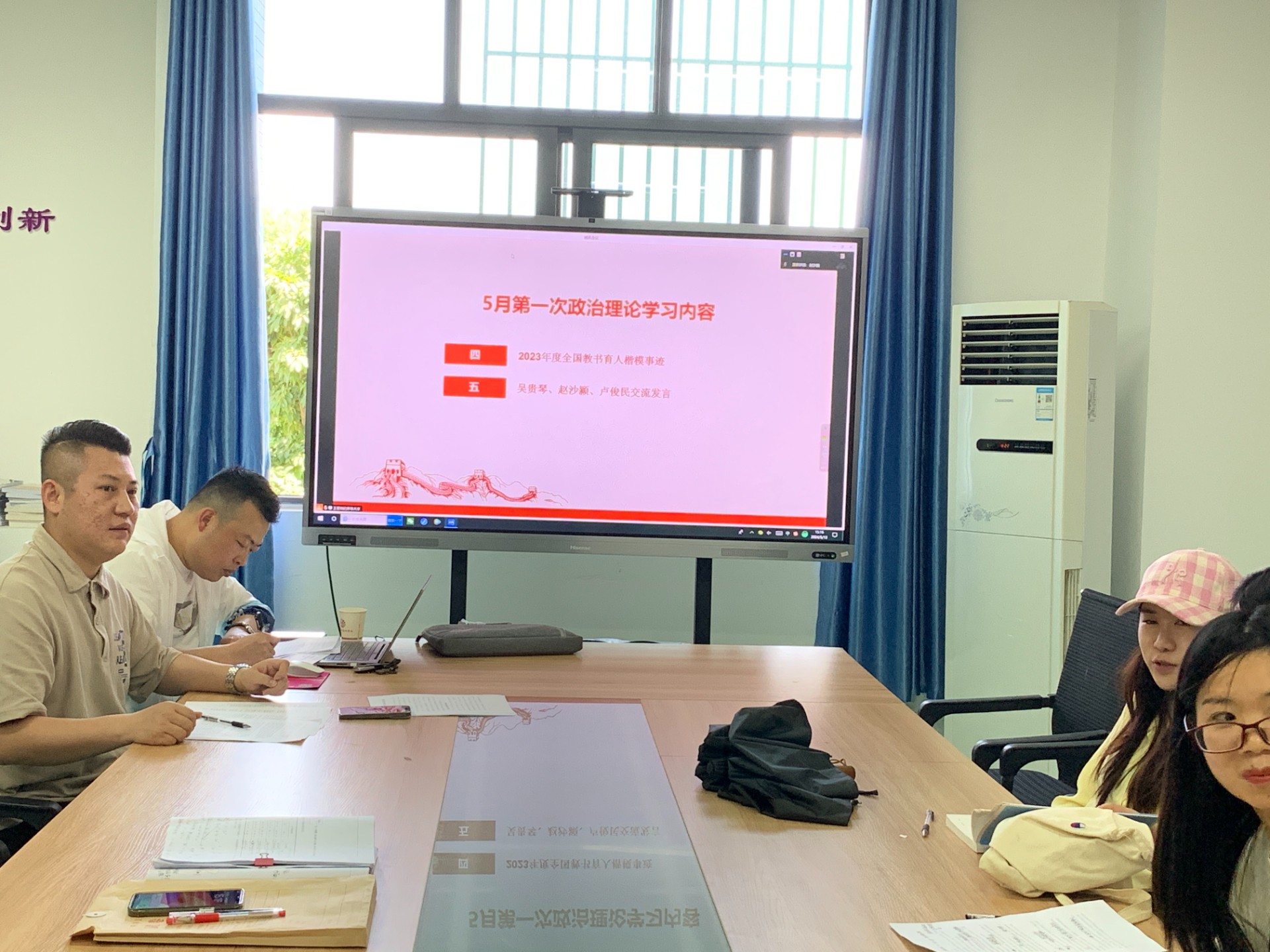 随后,由我院党支部宣传委员兼统战委员卢俊民带领大家学习了“以教育家精神引领教师队伍高质量发展”习近平总书记致信全国优秀教师,明确提出并深刻阐释了中国特有的教育家精神。教师队伍要以教育家为榜样,大力弘扬教育家精神。具体要深刻认识教育家精神的时代价值、要全面领悟教育家精神的科学内涵、要以教育家精神涵养大国良师。随后,带领大家学习了解了2023年度全国教书育人楷模事迹。