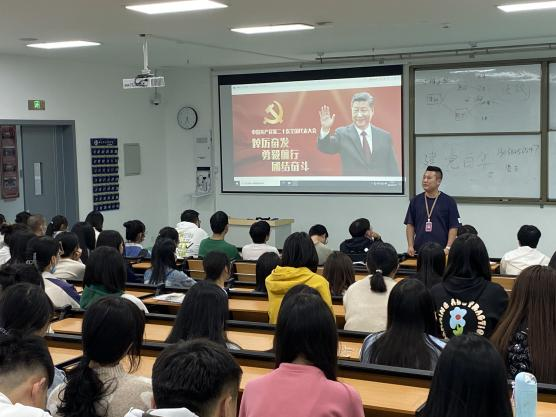 10月16日上午10点,辅导员卢俊民带领2019级、2021级全体同学在B教学楼102观看直播。10月16日下午4点,辅导员葛慧喜带领2020级、2022级全体同学在A栋教学楼212观看了大型电视专题片《领航》,并布置作业希望同学们在闲暇时间中可以观看余下部分,并由2022级新生曾梓航带领全体同学学习张桂梅(“七一勋章”获得者、中共二十大代表、丽江华坪女子高级中学校长)的优秀事迹。