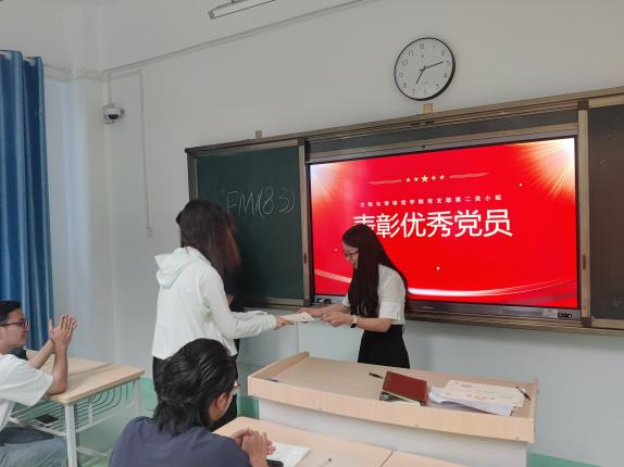 最后,吴贵琴老师勉励他们珍惜荣誉、再接再厉,发挥模范带头作用,进一步加强理论学习,同时鼓励其他党员、积极分子向获得表彰的优秀党员们学习,向先进靠拢,从讲政治的高度重视学习、抓好学习,不断提升学习效果、增强自我本领,以更加昂扬向上的精神风貌迎接新的一年。