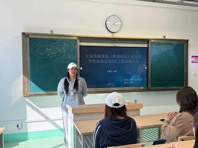 2026年3月28日16时,文化传承学院(梓潼校区)团总支学生会于教学楼B205召开三月工作总结会议。本次会议由文体部部长李羽曦主持,学生会主席团成员、各部门干部及优秀干事参会。