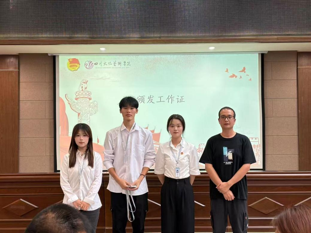 文物与博物馆学院辅导员张孟平为学生会干部颁发工作证。