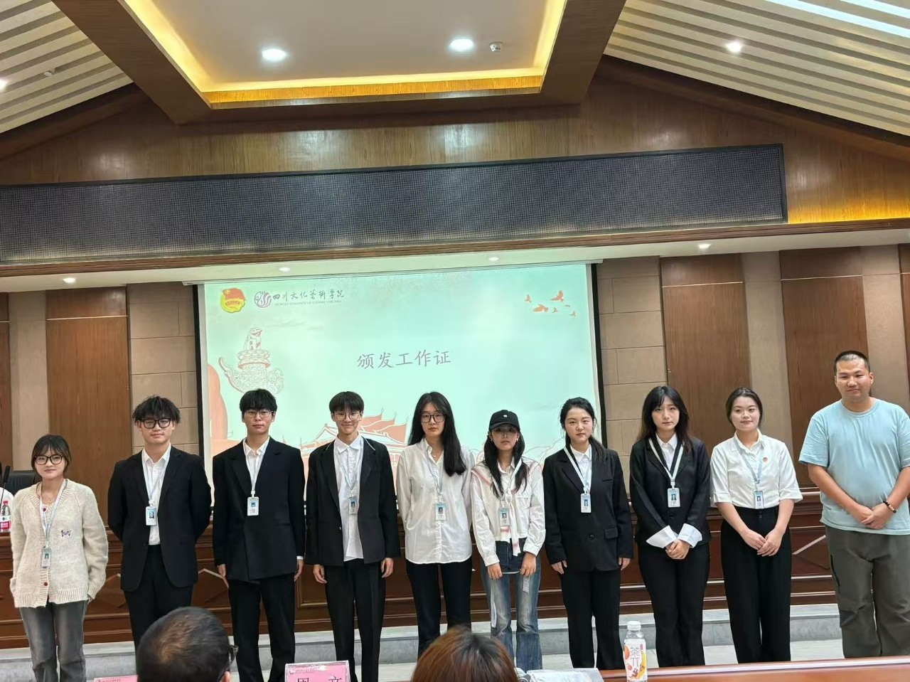 而后,文物与博物馆学院副院长周文为主席团颁发工作证。