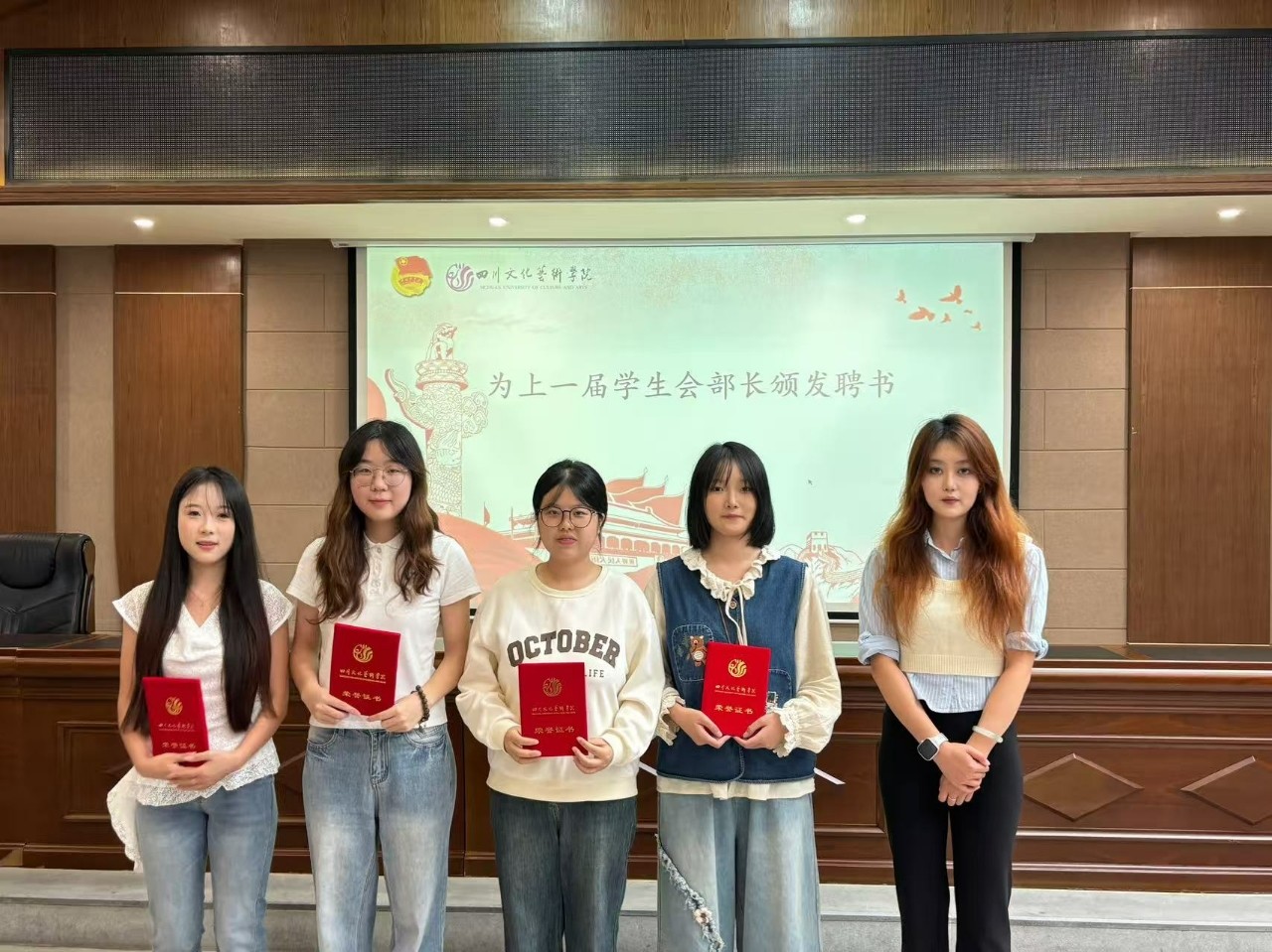 随后,由文物与博物馆学院副院长周文为上届学生会主席团成员颁发聘书。