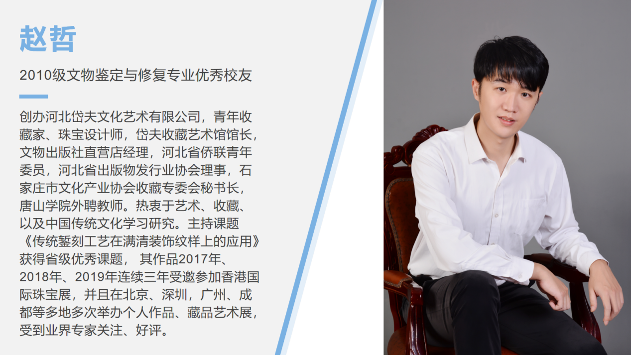 分享会开始前,羊书记对目前就创业形势作了一定分析并对即将开展讲座的赵哲学长进行了介绍。随后,2010级文物鉴定与修复专业优秀校友赵哲进行了主题分享。