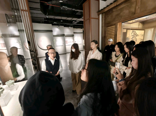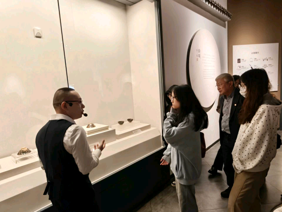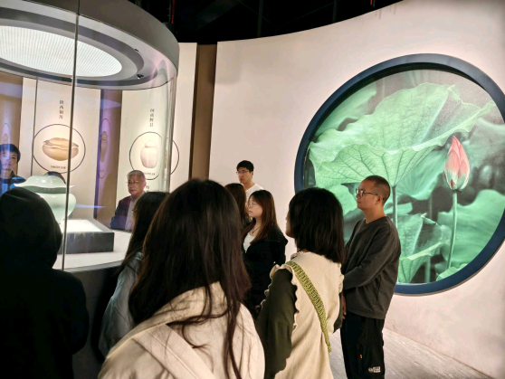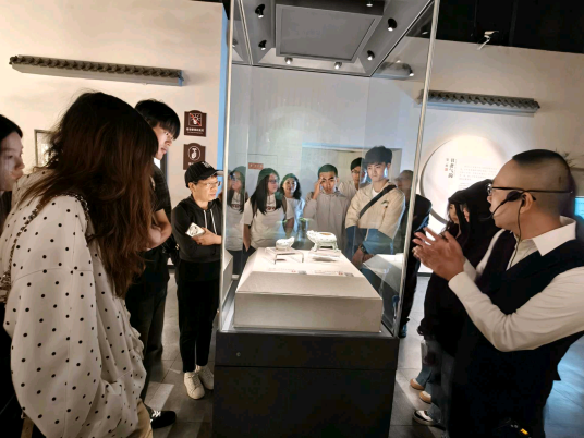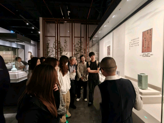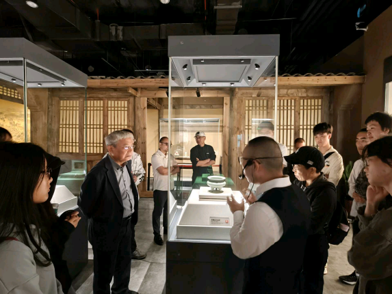 在四川宋瓷博物馆,师生们以“瓷器背后的宋朝生活”为主题,聚焦南宋窖藏瓷器的文化基因。师生们首先前往了博物馆三楼,那里展示了遂宁古代历史文化的全貌,龙泉窑青釉荷叶盖罐、景德镇青白瓷梅瓶等1300余件窖藏文物令人叹为观止,勾勒出宋人“焚香点茶、挂画插花”的雅致生活图景。