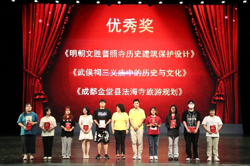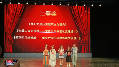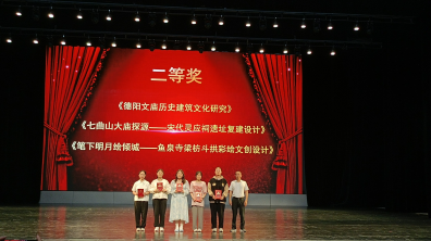 获得本次比赛二等奖的是《德阳文庙历史建筑文化研究》《七曲山大庙探源—宋代灵应祠遗址复建设计》《笔下明月绘倾城—鱼泉寺梁枋斗拱彩绘文创设计》。