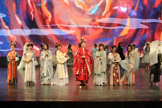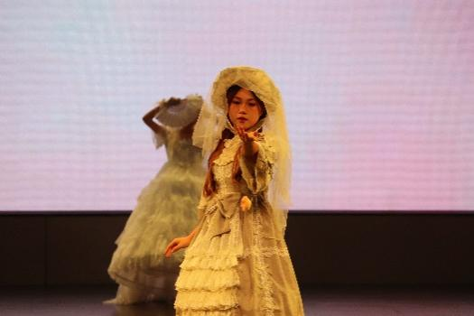 美好事物谓之华,万事万物谓之万象,服装秀《华罗万象》,中西合璧,甜美可人的洛丽塔与优雅飘逸的汉服打破次元壁,携手走进观众视野,各美其美,美美与共,给人以美的享受又充满意义,其中还包括情景演绎,真可谓黄粱一梦。