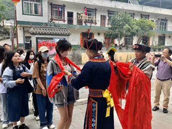 头顶瓦,脚踩云,一曲萨朗终,一抹红羌扬,羌笛悠悠,羌魂不息。此次调研圆满结束,在大家一句句祝福语“纳吉纳鲁”中,依依不舍的踏入返校的车。通过此次调研,同学们收获颇丰,对羌族文化的认识与了解从文字转变为具体的场景,深切感受到了羌族传统风俗习惯、民间文化和深厚的历史文化底蕴。古寨的魅力深入人心,激励着同学们在未来的学习中,对羌族文化内涵进行更深的研究。