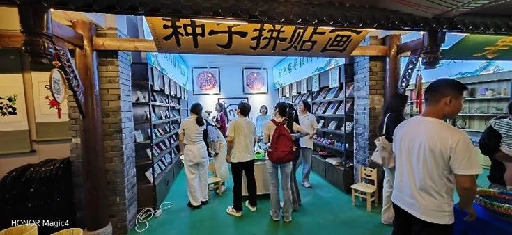 接着,在柯教授的带领下,前往羌族非遗创意馆参观。羌族非遗是中华民族优秀文化宝库中的瑰宝,它以独特的魅力和浓厚的历史底蕴,展现着羌族人民的智慧与创造力。创意馆内,陈列着羌酒、羌绣、羌族草编和种子拼贴画,引得同学们目不暇接,感受到羌族非遗的精美绝伦和巧夺天工。