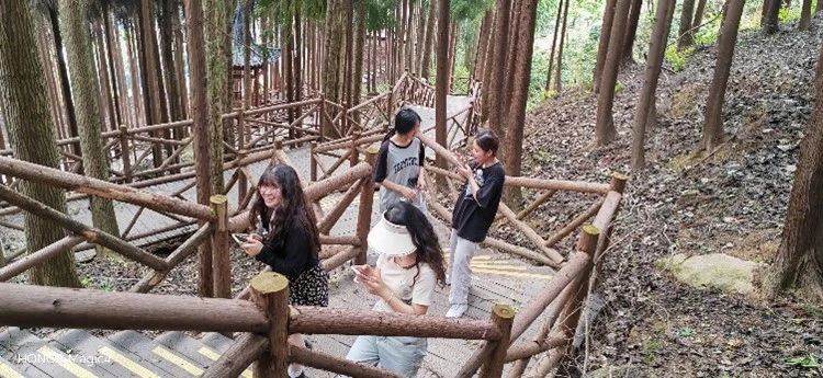 同学们随后到林海石源的栈道徒步观赏,漫步林中,感受大自然的静谧与美好。阳光从林叶间透露出来,光影交错,使人心情变得明媚起来;林中清新空气,使人深沉平静,仿佛心灵也受到净化。