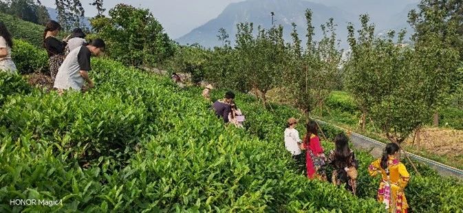 嫩芽香且灵,吾谓草中英。羌茶所传承的文化历史悠久,古羌茶艺,是羌民族的一种传统技艺。最早有北川古羌茶文字记载的时代为唐代,距今有1300多年历史。同学们在采茶过程中其中不仅感受到茶语茶香,也体验到采茶的趣味。