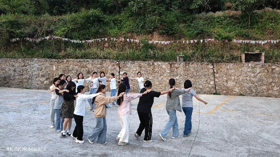 在夕阳余晖的陪伴下,老师与同学们共进晚餐。稍作休息后便一起进行户外活动。同学们在郭娇娇、吴宇婷老师的带领下学习了羌族舞蹈跳锅庄,同学们都认真学习,乐在其中。