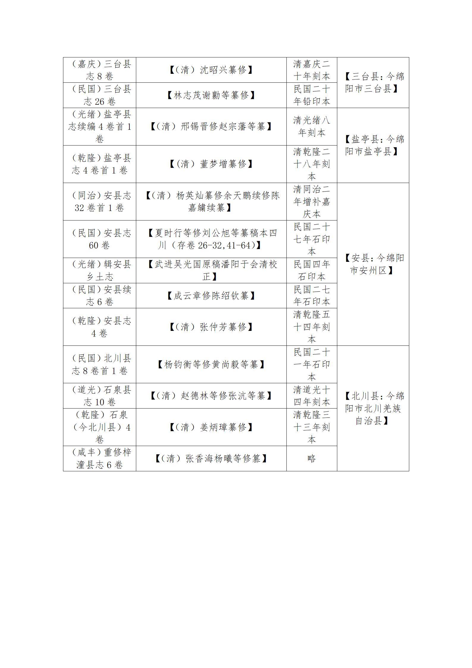 本汇刊所收集版本皆为电子影印版,保存于文物与博物馆学院办公室。详细书目见目录附表。《绵阳方志汇刊》收集的工作,旨在为学院全体同学提供学术研究和课题研究的第一手资料。如有需要,可自行前往学院办公室下载阅读学习。