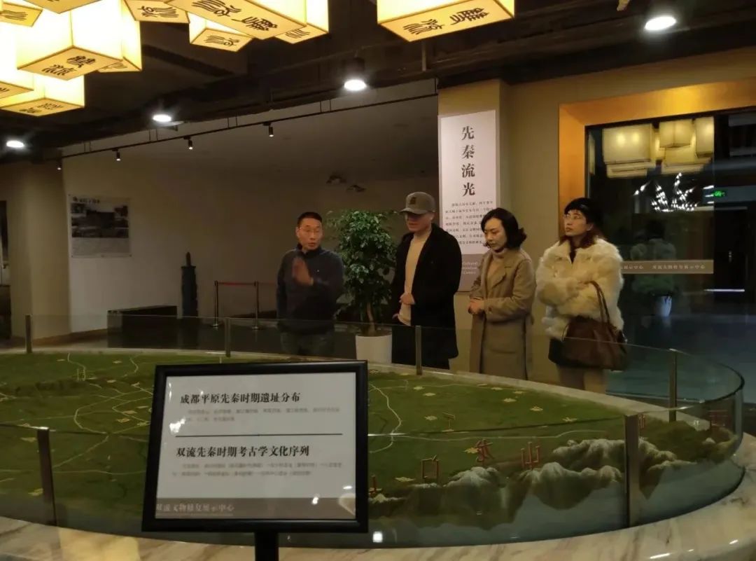 接着下午我院一行人来到双流广都博物馆,与成都市双流区考古队长、广都博物馆负责人李国就考古人才、博物馆人才培养、教师下企锻炼实践等方面的相关事宜进行多方面的交流。随后,由广都博物馆负责人李国带领大家参观了广都博物馆,李国介绍博物馆内藏品跨度近10万年,可让广大市民能够对这片土地上近10万年的人类活动史、4500年的文化史、2300年的建城史以文物的形式印证出来,因为过去双流的历史只有文献记载,“今天我们可以通过文物实物的展示,让大家的感受更为真实。这个博物馆里面有各个时期的石器、陶器、青铜器、玉器以及竹木器、骨角器等文物,我们可以通过这个窗口,向外传递双流悠久的历史和厚重的文化。”