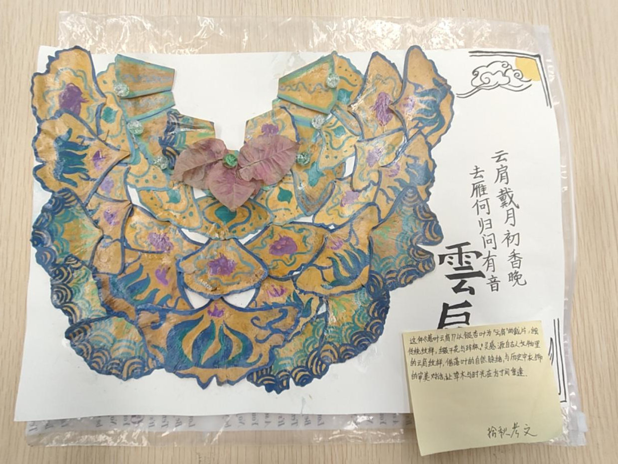 近日,由文化传承学院精心策划组织的秋叶DIY创意活动圆满落下帷幕,为师生们带来了一场充满趣味与文化内涵的秋日盛宴。在本次活动中我院学生踊跃参与、认真准备,每一个作品都展现了他们的想象力与创造力。经过一番激烈的角逐和评委们的认真评选,一批优秀作品脱颖而出。这些作品不仅创意独特、制作精美,更充分展现了同学们对文化传承的理解和热爱。